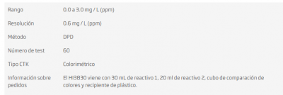 El HI3830 se suministra completo con todos los reactivos y accesorios necesarios para realizar aproximadamente 60 pruebas.