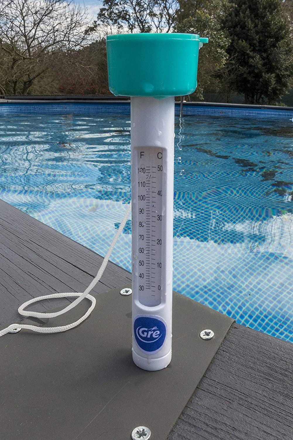 GRE ofrece una amplia gama de termómetros para medir la temperatura del agua de la piscina: termómetros integrados en el dosificador flotante, lo que le permite tener una doble función, termómetros que se pueden fijar a la escalera para evitar de estar flotando al medio de la piscina y molestar a las personas que se bañan. Nuestra gama de termómetros está disponible en diferentes diseños: convencionales y más divertidos con figuras de animales.