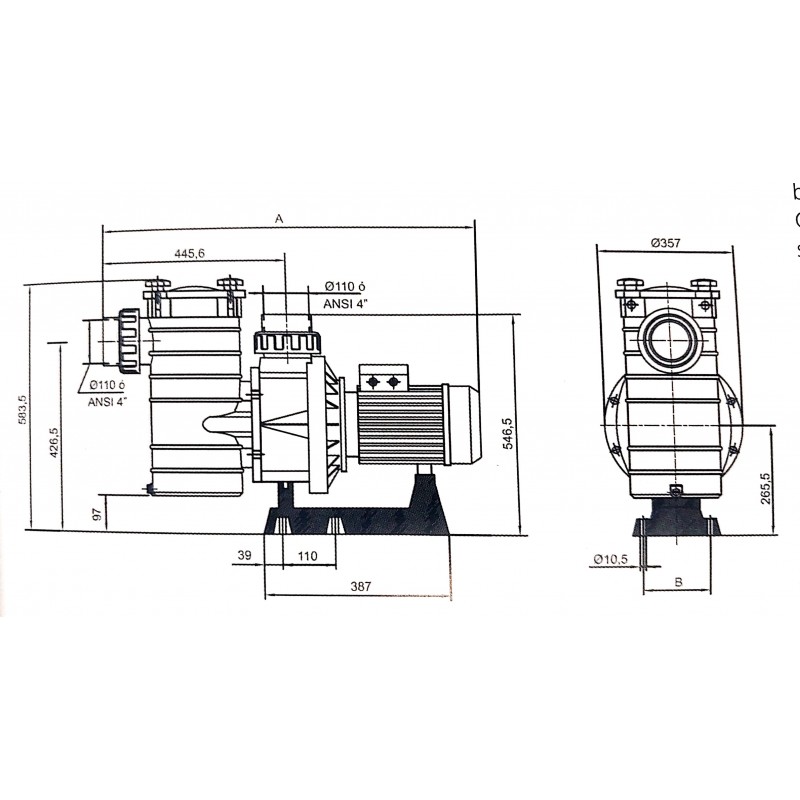 - Motor: protección IP55, aislamiento clase F, 50 Hz, 1450 r.p.m.