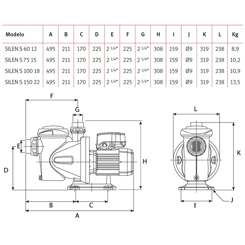 - Completamente silenciosas y de servicio continuo, con protector térmico incorporado, tapón purga, prefiltro con tapa transparente y cierre antibloqueo.