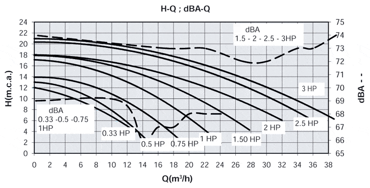 – Se trata de una bomba centrífuga monocelular con capacidad autoaspirante con motores monofásicos o trifásicos que van desde 1/2 CV hasta 3 CV. La nueva generación de motores eurotensión de la gama Victoria Plus permiten trabajar con un margen de tensiones del +/-10% respecto a la nominal del motor, es decir, ante eventuales subidas y bajadas de tensión hasta un máximo del 10%, el motor de la bomba trabajará normalmente.