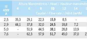 Rodete y difusor: Noryl con 30% fibra de vidrio.