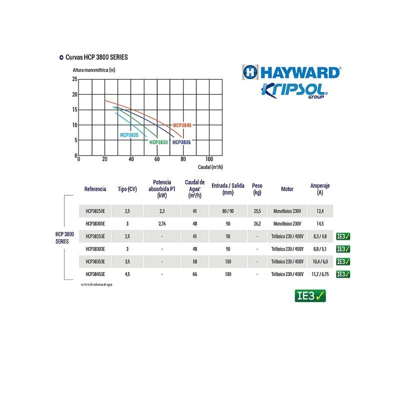 Características bomba Hayward HCP-3800