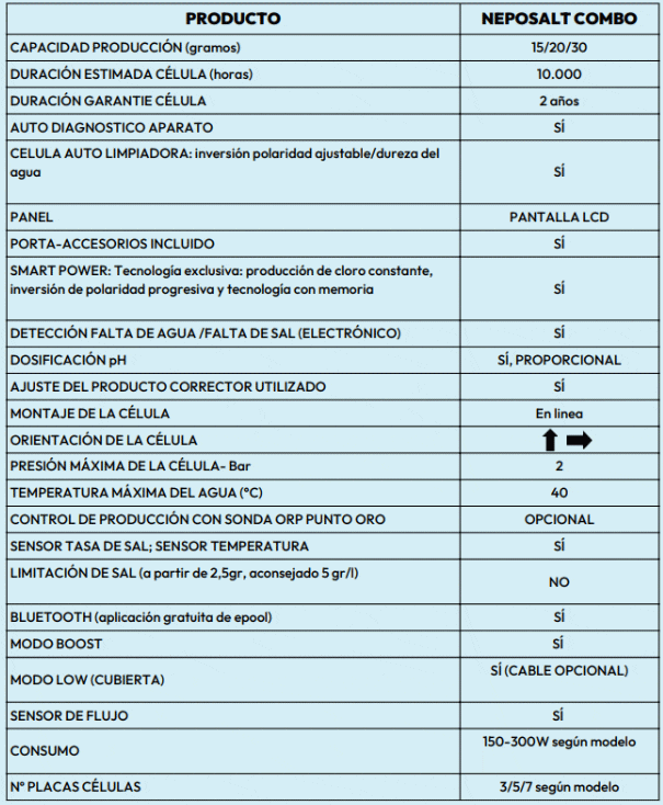 - Fácil de instalar y usar, NEPOSALT COMBO se adapta a todos los sistemas de filtración y a todo tipo de