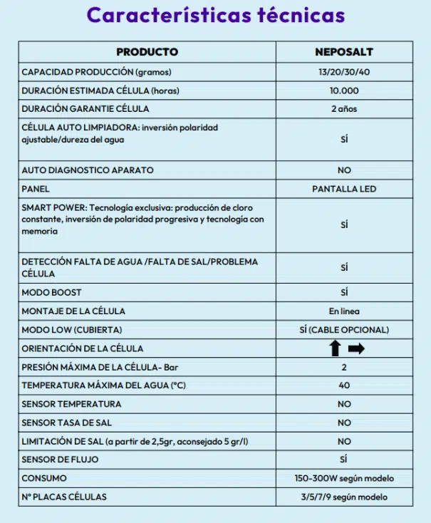 El clorador salino NEPOSALT es fácil de instalar y de usar. Solo es necesario añadir sal al agua de la piscina y el dispositivo se encargará de generar el cloro necesario. Además, su funcionamiento es totalmente automático, lo que significa que no es necesario estar pendiente de él una vez que está en funcionamiento.