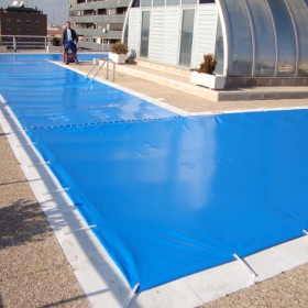 Evita la descomposición del agua, pudiendo ser utilizada para la siguiente temporada. Minimiza los efectos de las heladas. Impide el paso de suciedad. Suprime los trabajos de puesta a punto. Conserva el vaso de la piscina. Ofrece gran resistencia al peso. Los puntos de las piedras de coronación de más roze con el cobertor, como el inicio de semicírculos o añadidos laterales, se refuerzan con un material concebido para esta función. Hilo (dTex) 1100