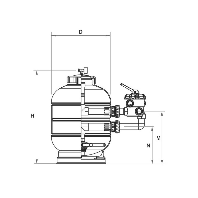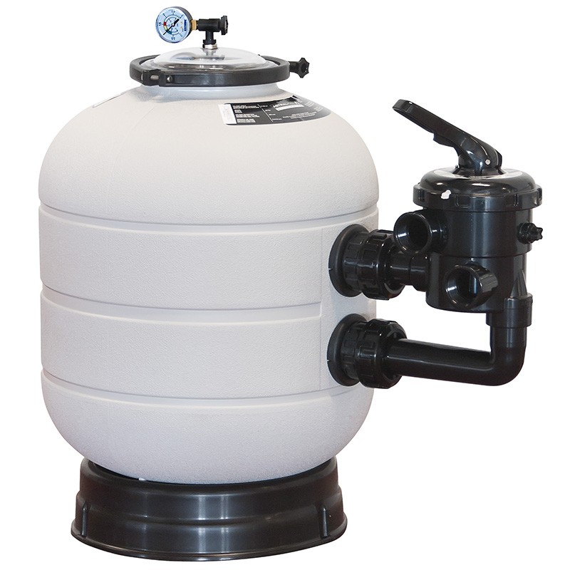 – Filtro de arena con salida lateral. También disponible con salida superior (top) según su conveniencia y el espacio disponible para su ubicación.