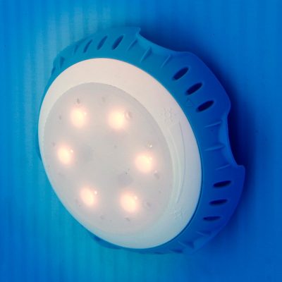 - Foco proyector LED en color blanco Gre LEDRW para conectar a la válvula de retorno de la piscina.