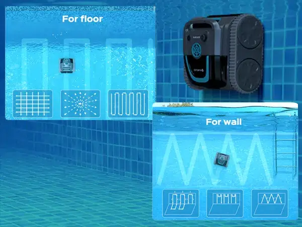 - Salida y espera en la pared: Al finalizar el ciclo, el limpiafondos se posiciona estratégicamente en la pared.
