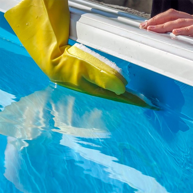 - Guante con esponja integrada para limpiar la línea de flotación de la piscina