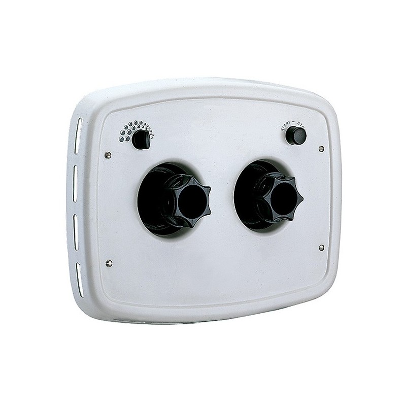 - Gracias a los pulsadores de poner en marcha/detener (ON/OFF) y de regulación de aire, podrá controlar completamente el equipo de natación contracorriente, sin necesidad de salir de la piscina.