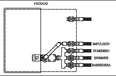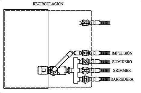 – Llave de skimmer abierta. Si lo que deseamos es añadir algún producto al agua. Las demás llaves cerradas.
