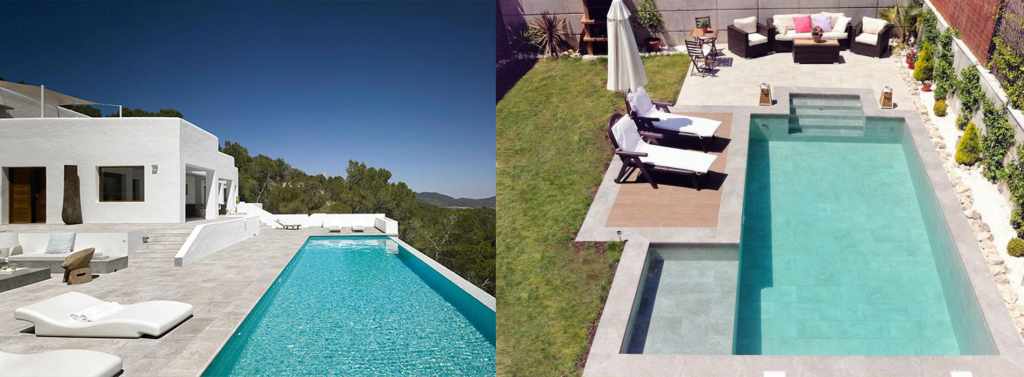 Sin duda, otra de las tendencias que se ha ido repitiendo en estos últimos años y que se mantiene es el uso de colores claros y neutros tanto en el revestimiento como en la coronación de la piscina. Para crear un ambiente minimalista y ganar una mayor luminosidad en tu piscina, las piezas en tonos claros son una gran elección, ya que tienen la particularidad de reflejar la luz. El recubrir el suelo circundante de una piscina con estas losetas conseguirá que los espacios estén muy bien iluminados y que aporten tranquilidad y relax a todo el entono.